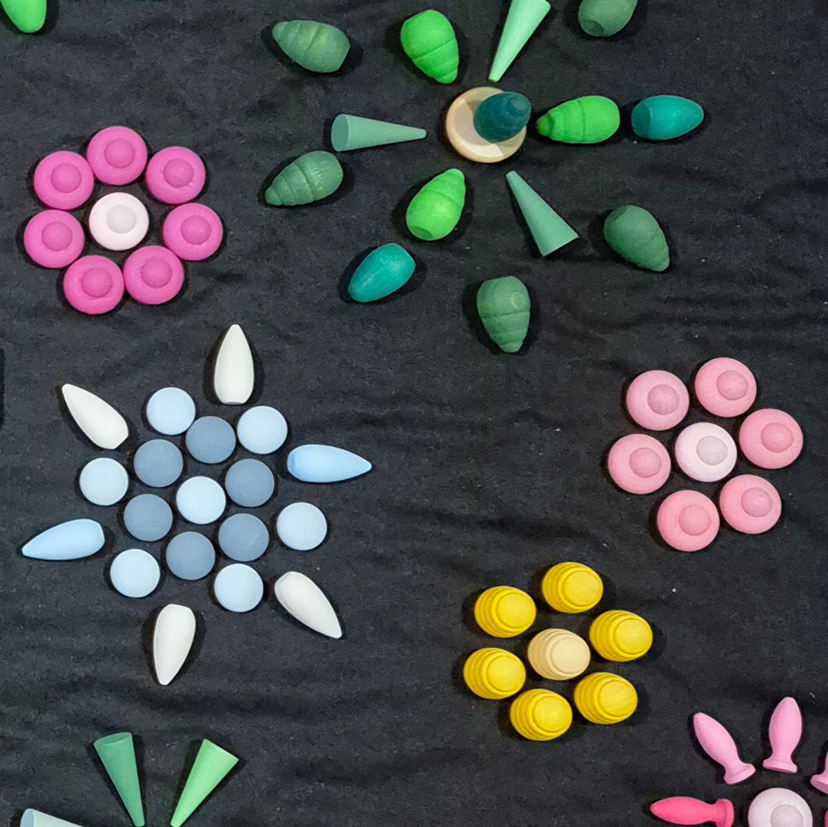 Children (and you) can explore patterns and make circular mandala-style pictures with the shapes.