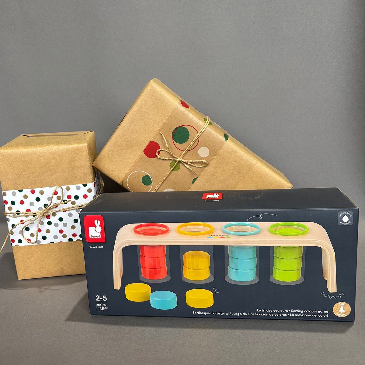 Discovering colours is a fascinating time for children! Play all day and learn about the 4 main colours, red, blue, green and yellow - thanks to this pretty wooden sorting game.