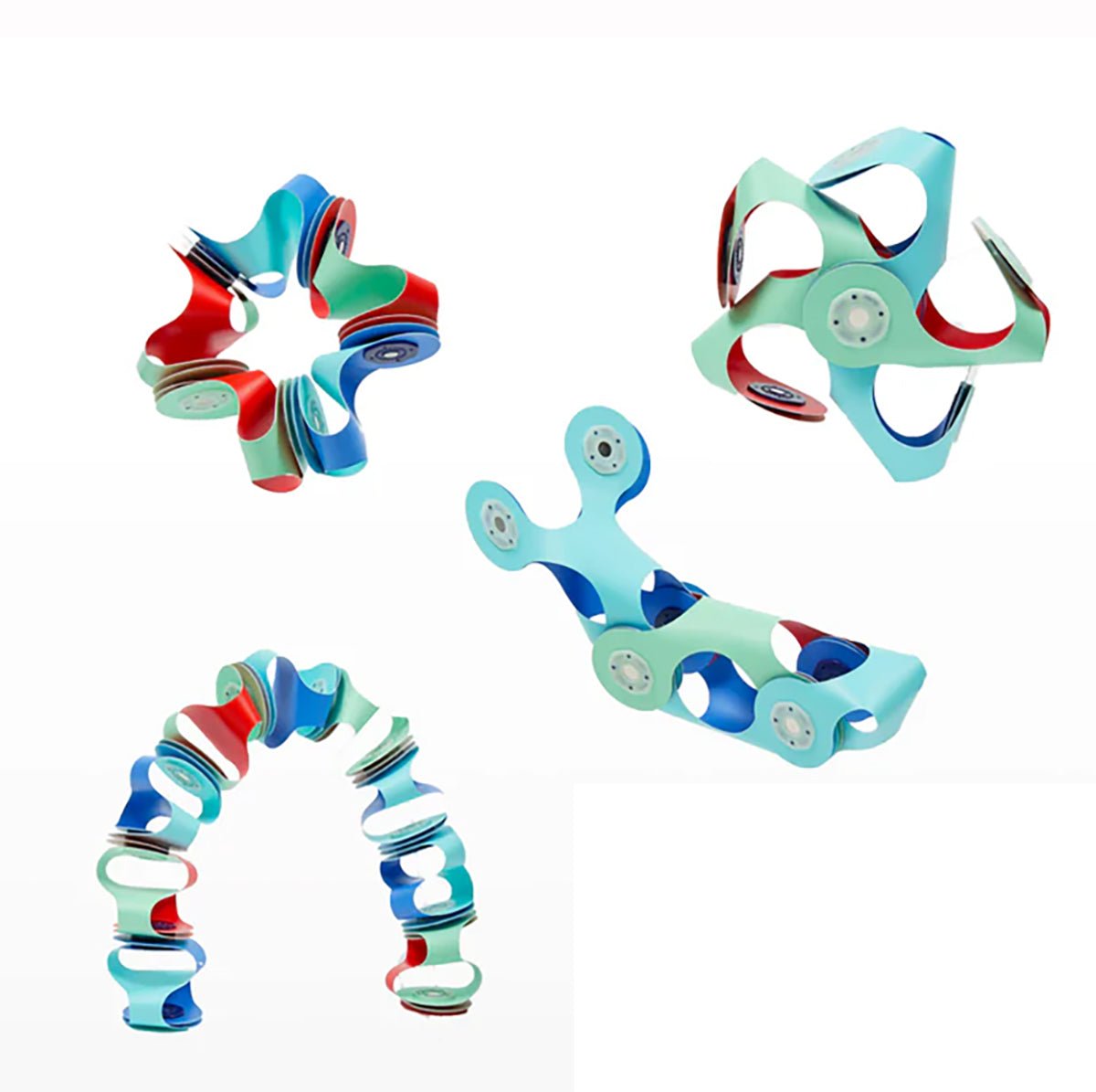 A great starter set to try the magic of Clixo creativity in Marine colours of blues and green and red.