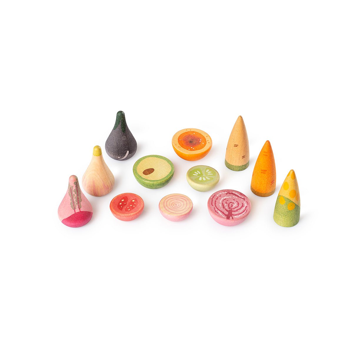These hand-painted wooden vegetables bring the garden’s freshest harvest straight to playtime.