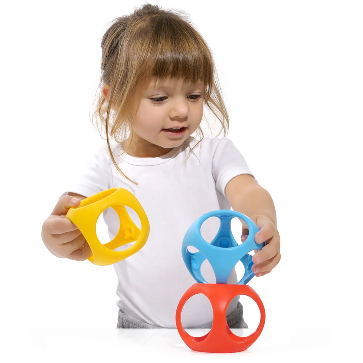 With elastic geometry the Oibo rolls, stacks, and springs back after every squeeze, inviting playful exploration from the very first months.