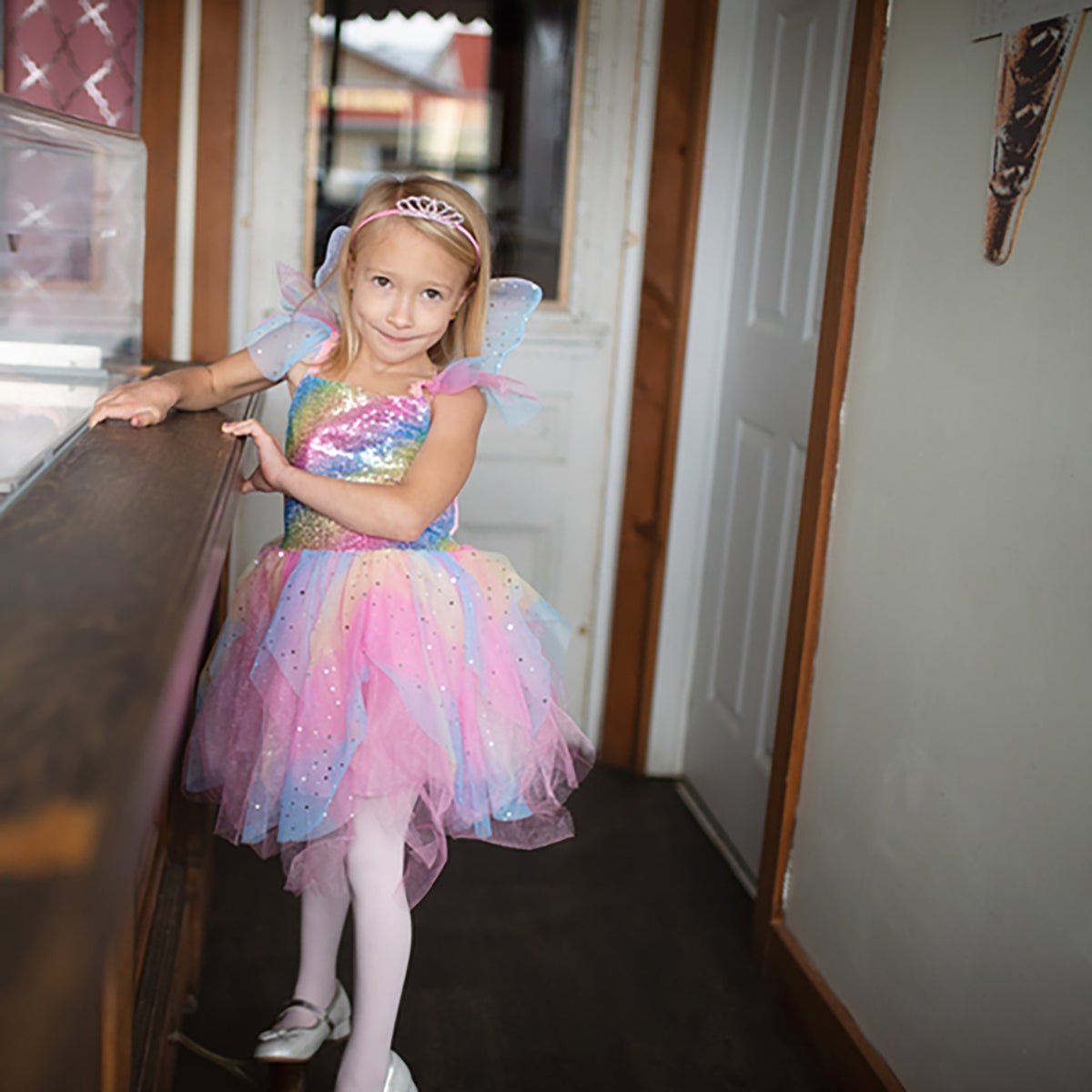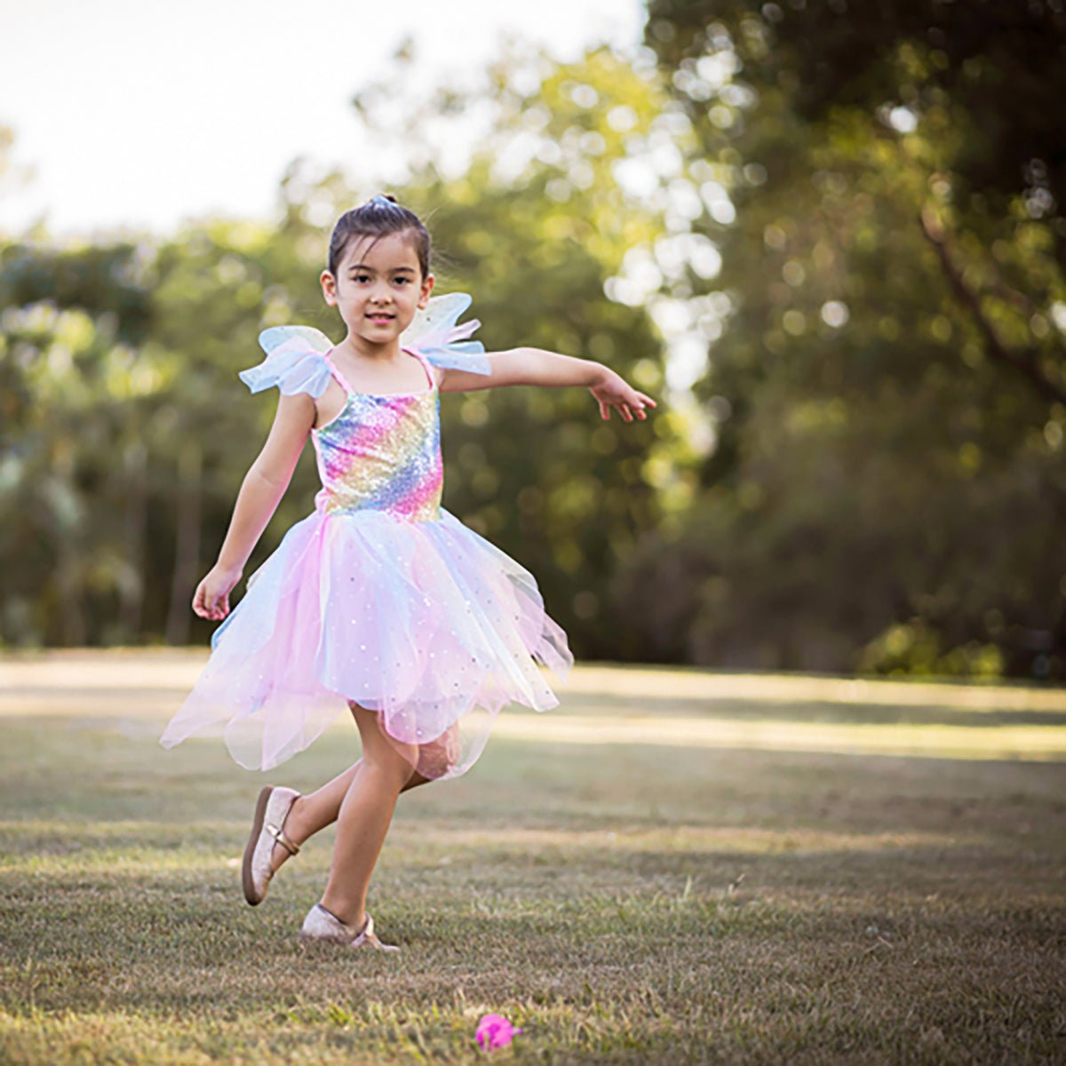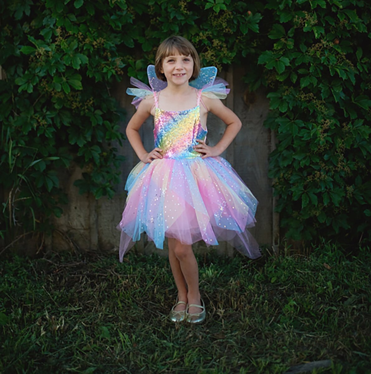 This is a floating rainbow dress with fairy wings which any fairy would dream about!