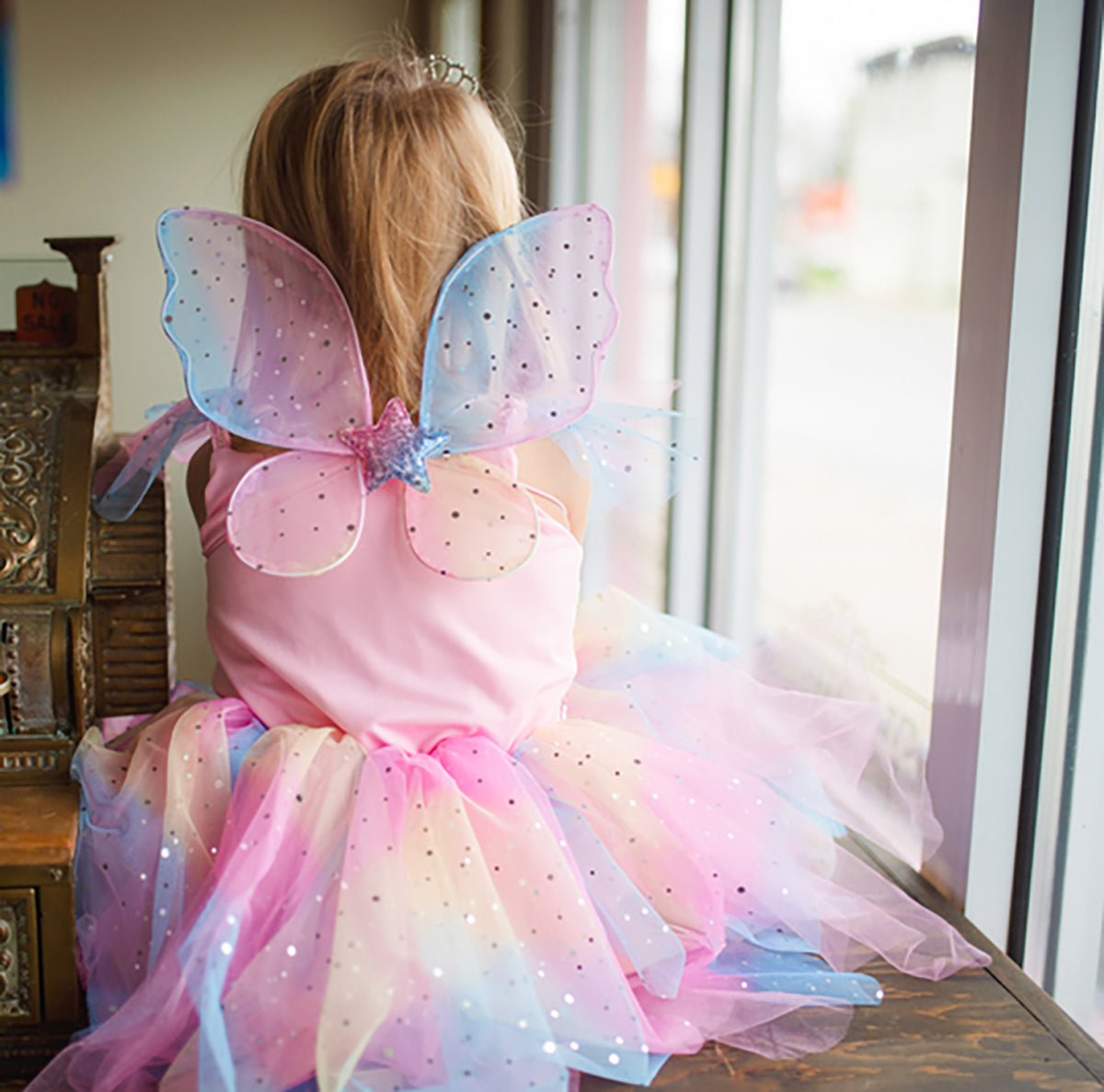 This is an everyday dress-up thanks to it being comfortable, machine washable and glitter-free. It is certain to delight all little fairies for the years to come.