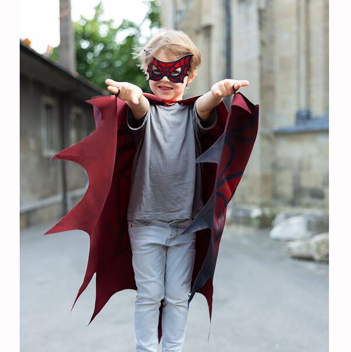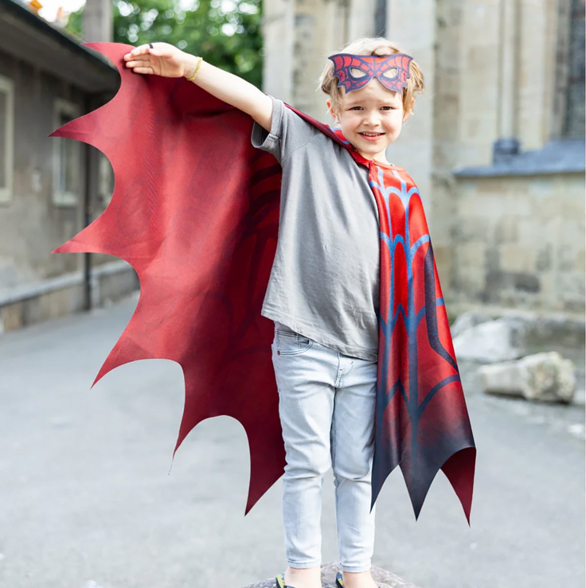 The set is complete with a red, spider web eye mask, perfect for completing their superhero transformation.