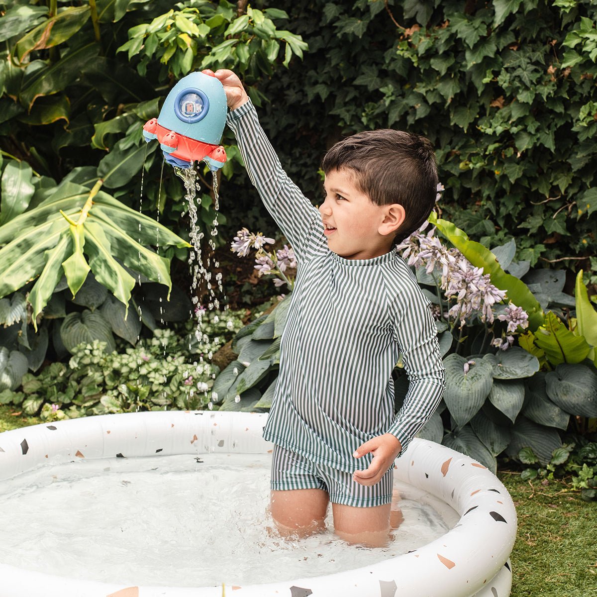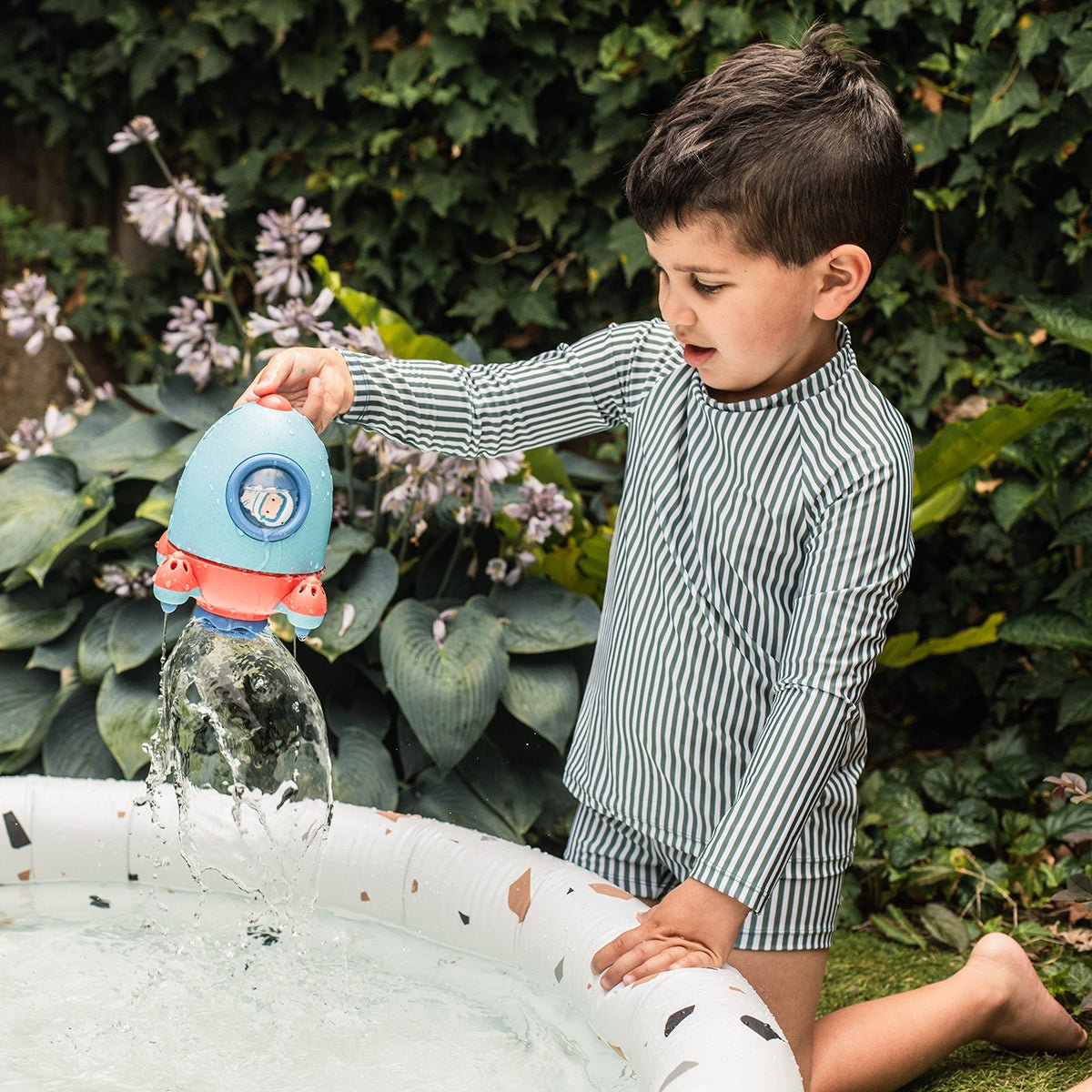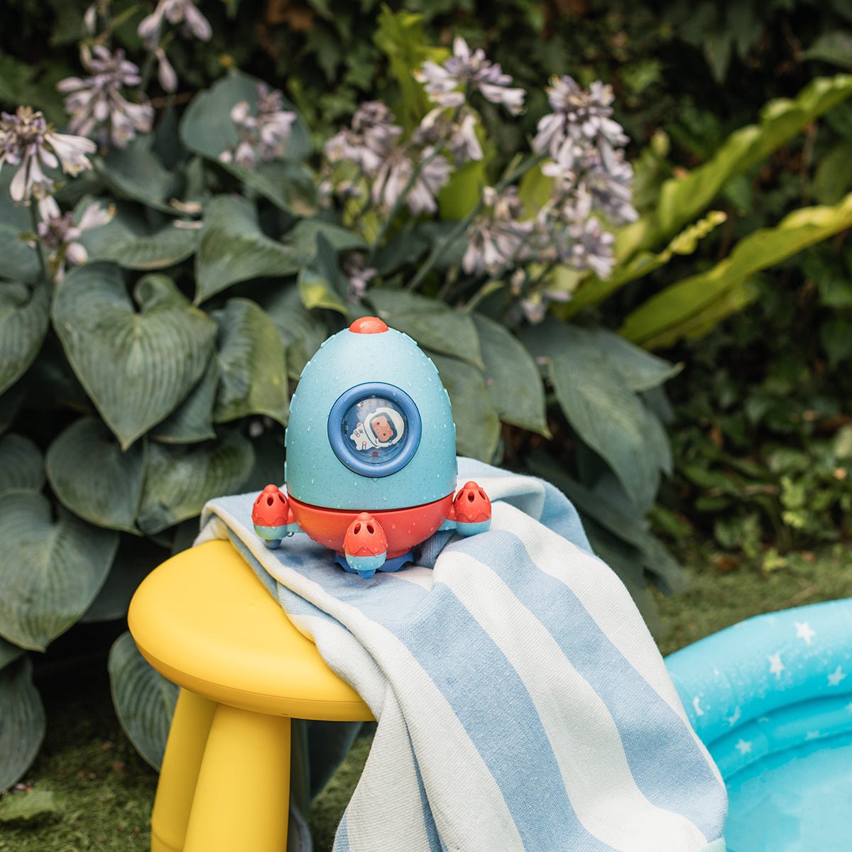 Simply dunk the rocket underwater to fill it up, and delight in the water cascading out as the ‘jets’ spin, creating a fun dome shape.
