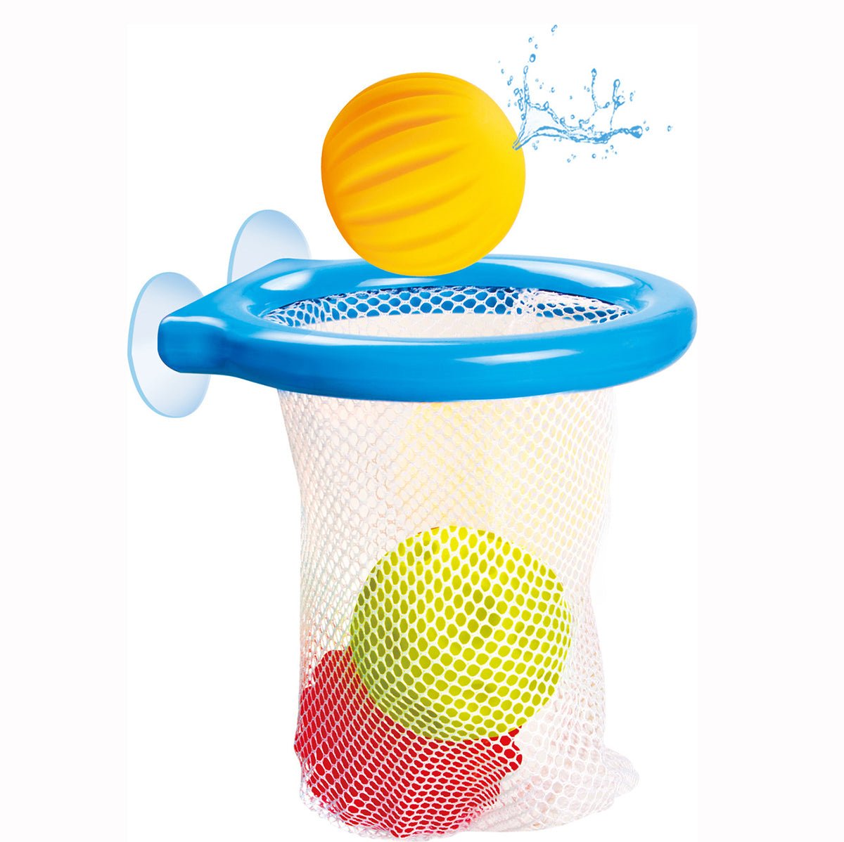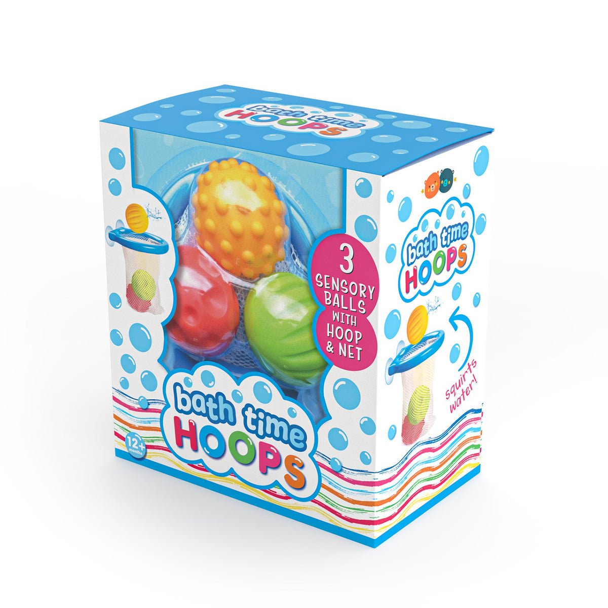 This fabulous bath set, has 3 colourful sensory balls, which are also Squirters, and a bath time hoop.