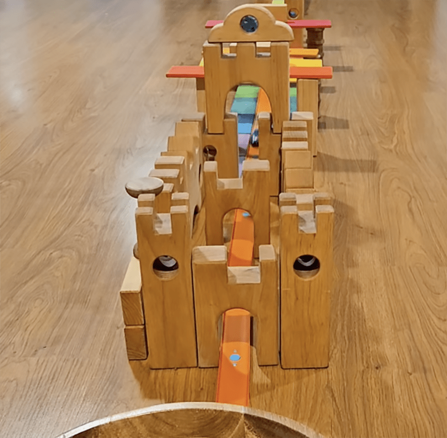 Large and chunky wooden block pieces make up this open-ended Knight's Castle.