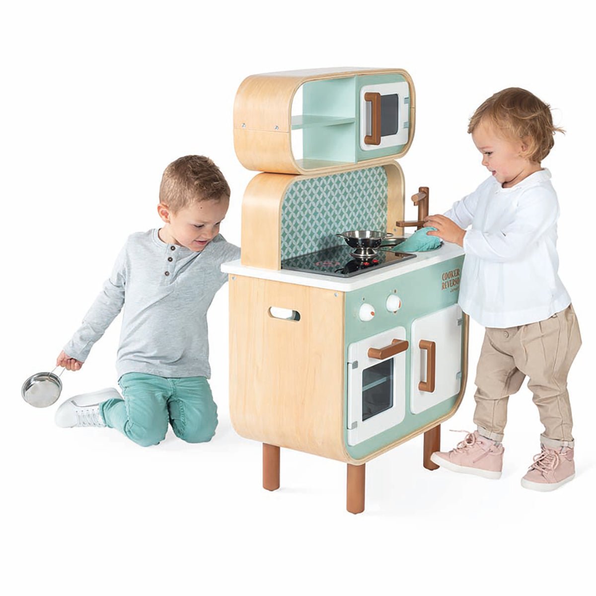 Compact and contemporary, the Janod Reversible Kitchen and Laundry is perfect for teaching healthy and essential role play life skills which kids love emulating in the playroom.