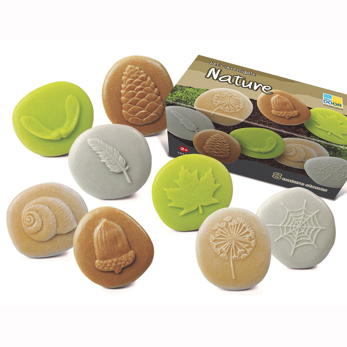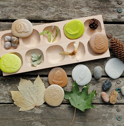 Wonderfully sensory, the details on the stones can be felt as well as seen. Go on a nature hunt and compare with the real things, make imprints in play dough and take rubbings using wax crayons.