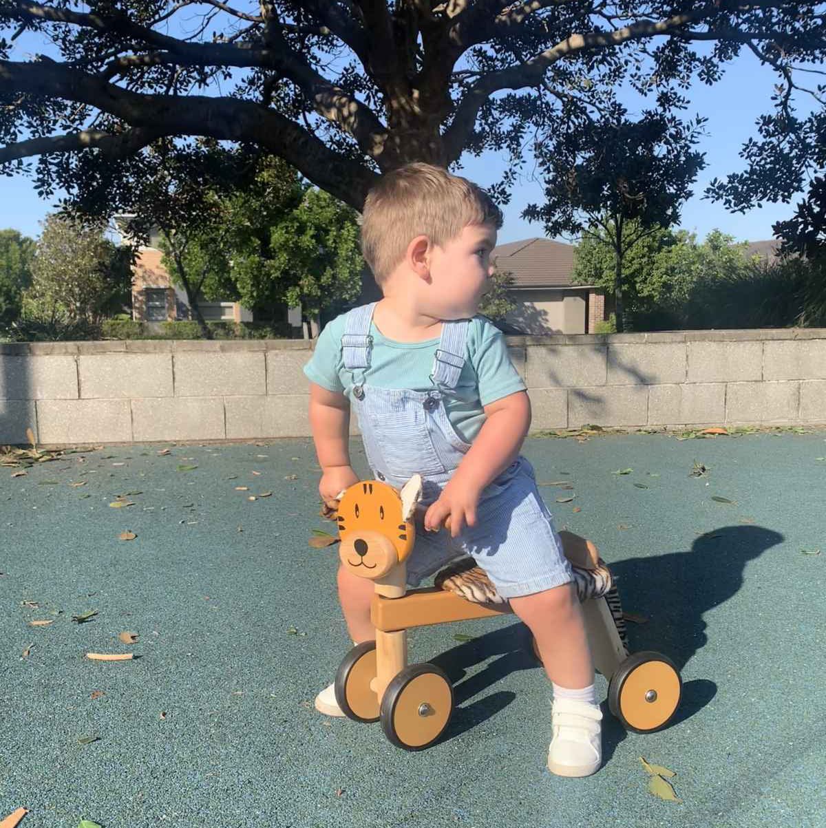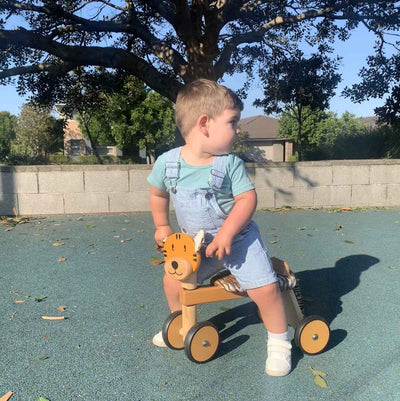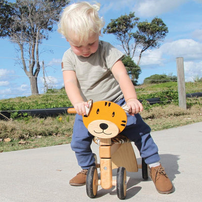 This is a ride-on tiger, in a sturdy wooden trike configuration. Your little tiger will love jumping on this trike to get around.